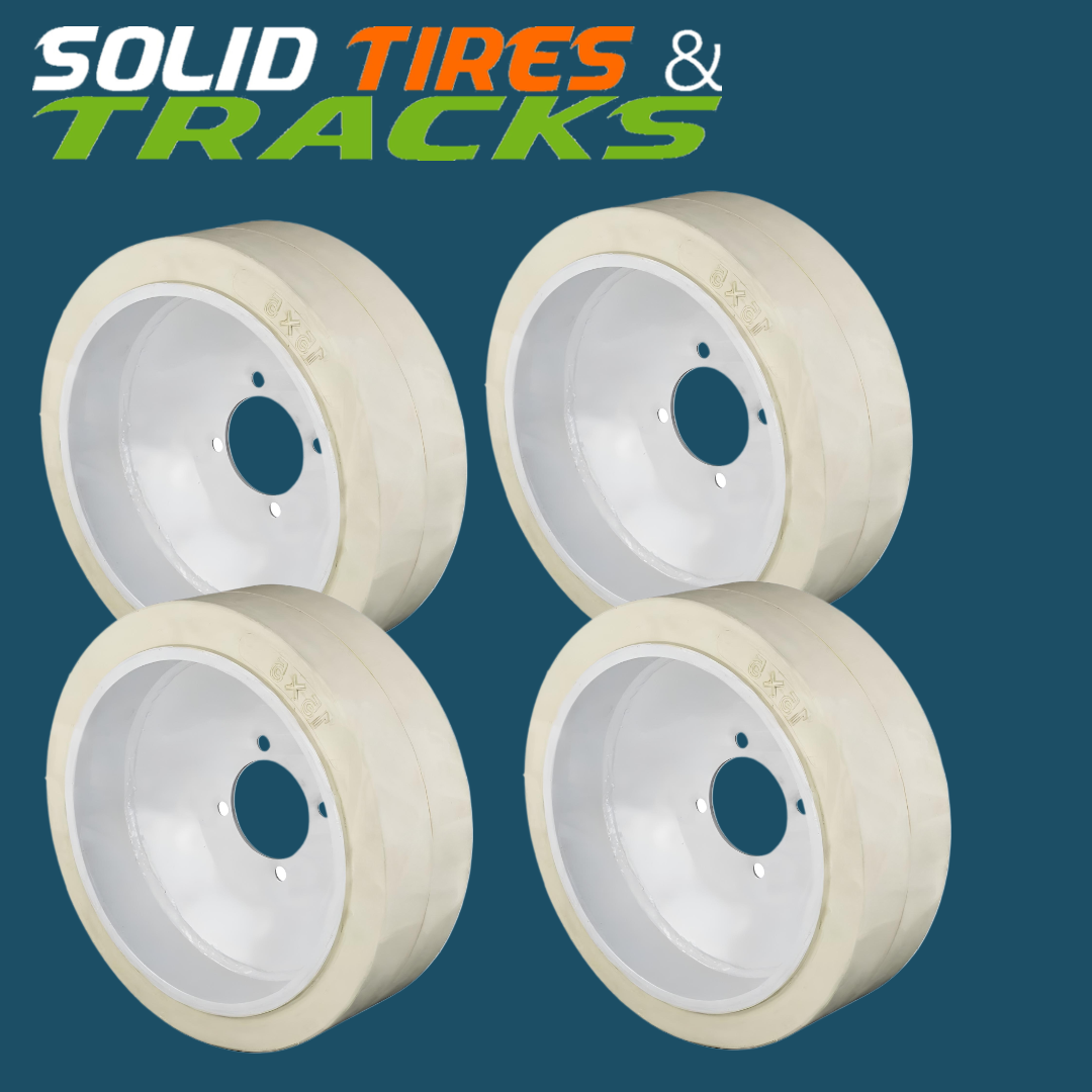 Our solid scissor lift tire and wheel assemblies are designed with both black and non-marking tires on 2, 5, 8, and 9 bolt-hole wheels to fit major makes and models. Assemblies are available for major 5K through 12K Scissor lift tires brands, including Genie, HAULOTTE, JLG, Skyjack, Snorkel, and more.