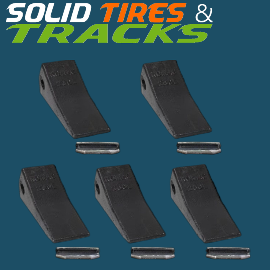 Solid Tires and Tracks offer reliable, cost-effective ground-engaging tools (G.E.T.) bucket teeth, compatible with a wide array of heavy equipment brands such as Caterpillar, JCB, Case, Bobcat, John Deere, Komatsu, Takeuchi, Kubota, and many more.